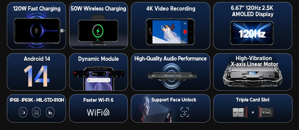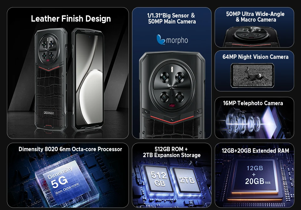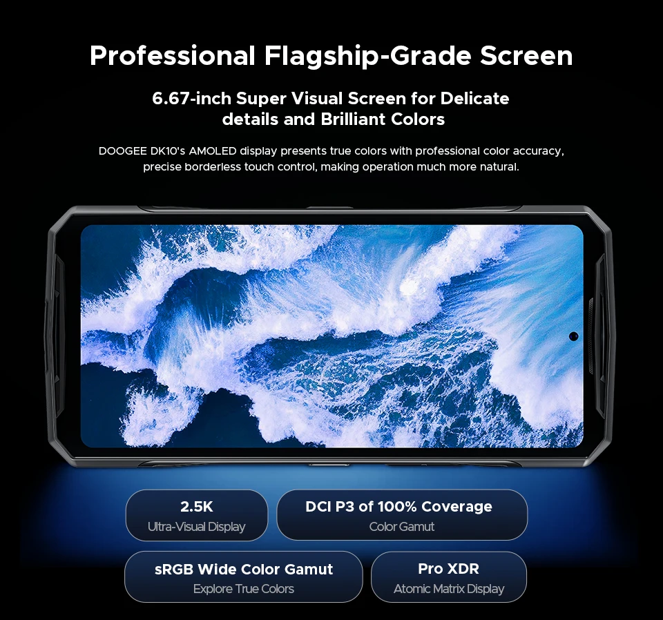 Global Version New Blackcro DOOGEE DK 10 Rugged Phone 5G 6.67″ 120Hz 2.5K AMOLED Display 12GB+512GB Morpho Quad Camera 120W
