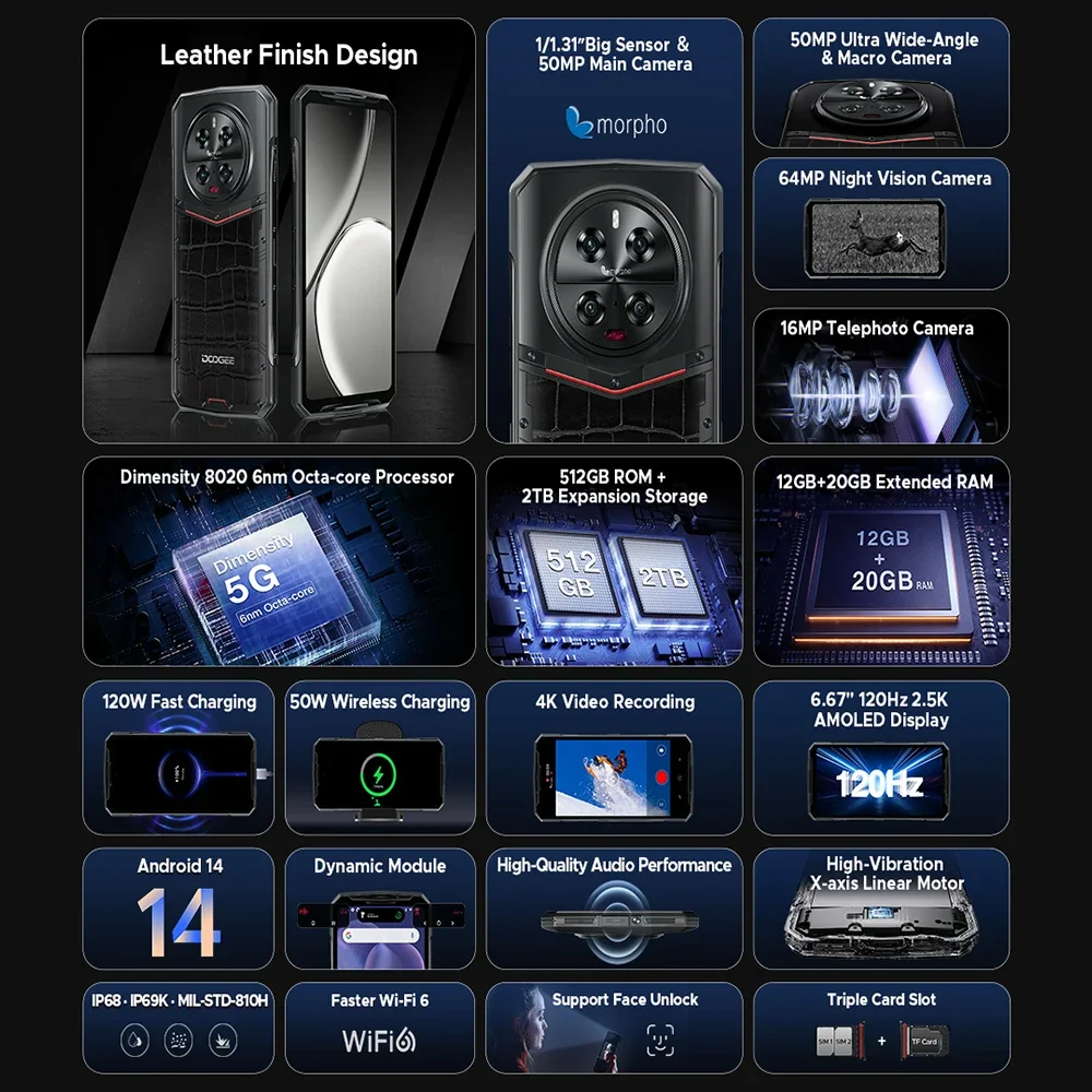 Global Version New Blackcro DOOGEE DK 10 Rugged Phone 5G 6.67″ 120Hz 2.5K AMOLED Display 12GB+512GB Morpho Quad Camera 120W