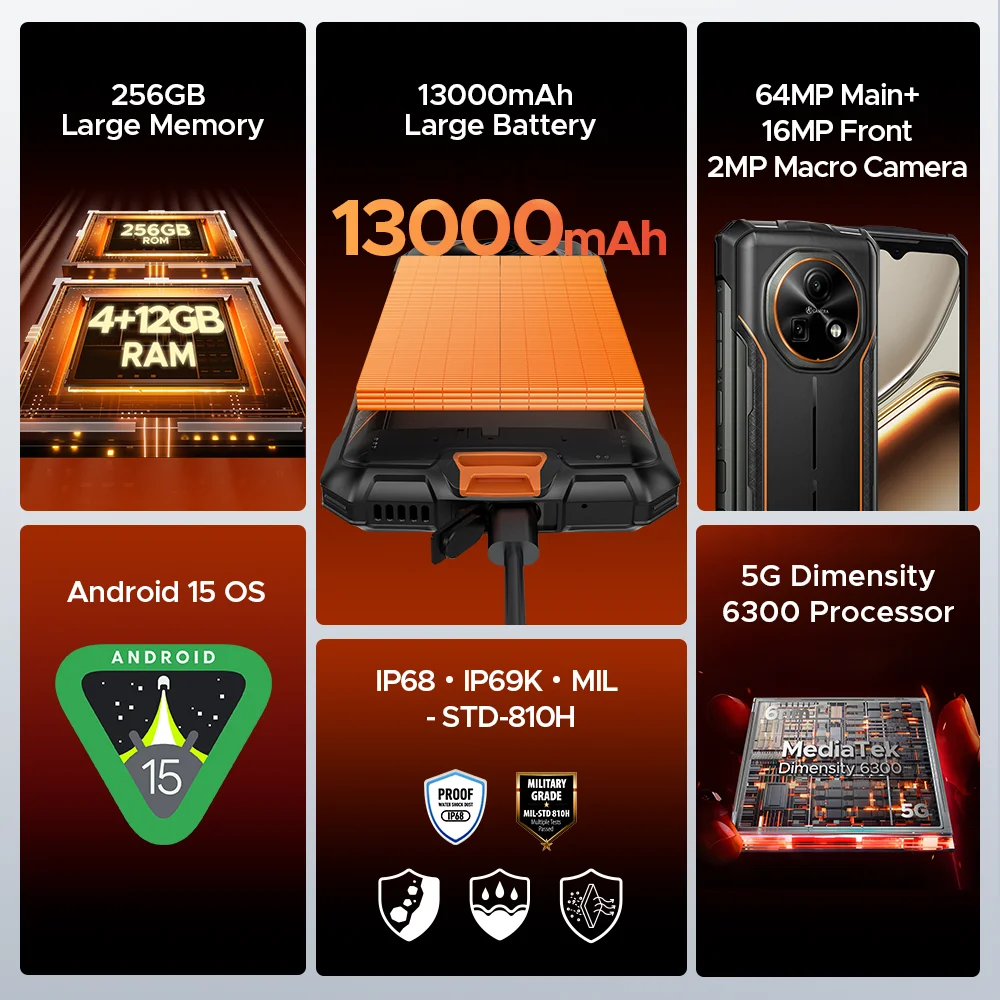 Android 15-Betriebssystem| 13000 mAh großer Akku| 64MP Hauptlicht + 16MP Vorne
