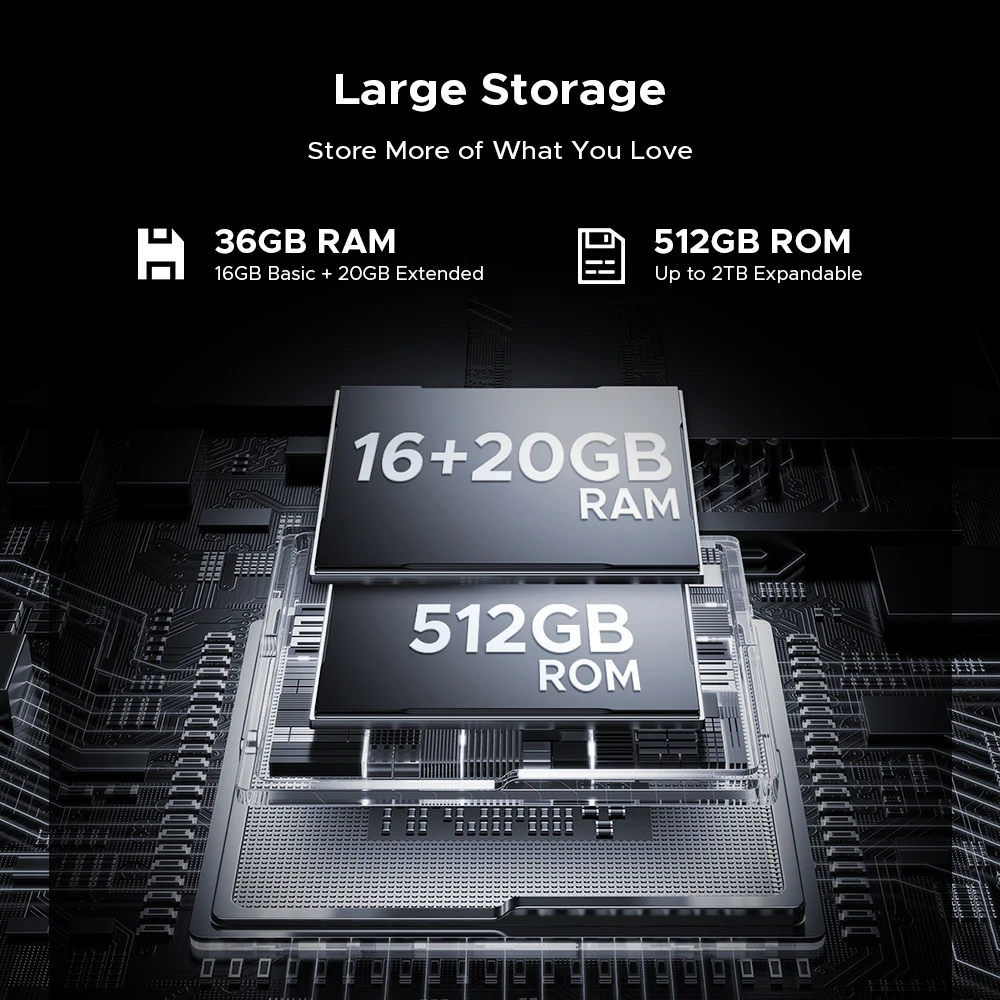 36 GBRAM (16 GB + bis zu 20 GB erweiterter RAM)+512 GBROM